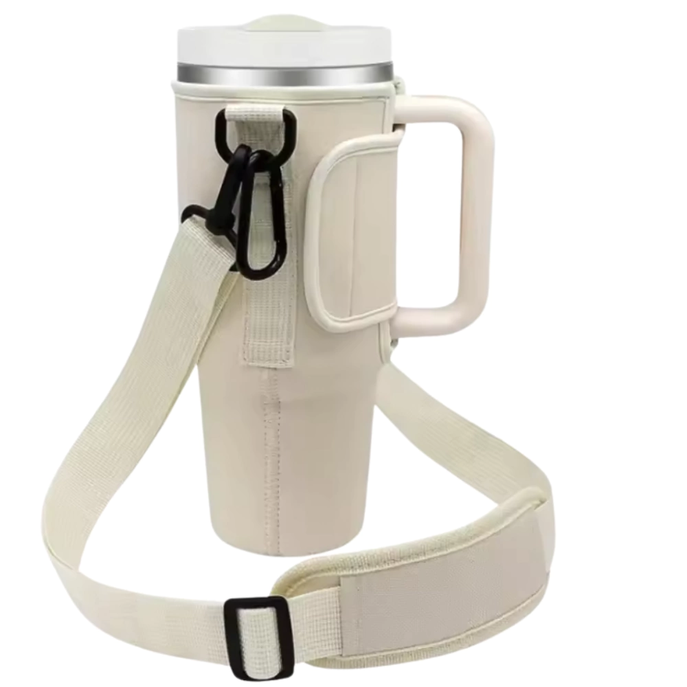 Leve sua garrafa ou copo de até 1,2L com estilo e conforto com esta bolsa portátil em neoprene. Ideal para quem busca praticidade, ela possui alça ajustável para uso no ombro ou transversal.